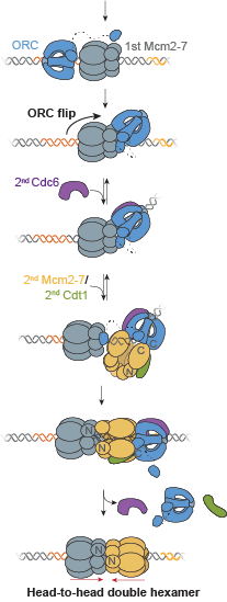 Gupta S., et al. A helicase-tethered ORC flip enables bidirectional helicase loading